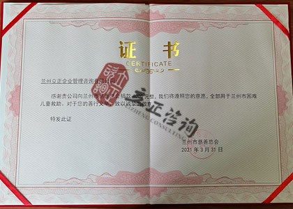 蘭州市慈善總會-捐贈證書