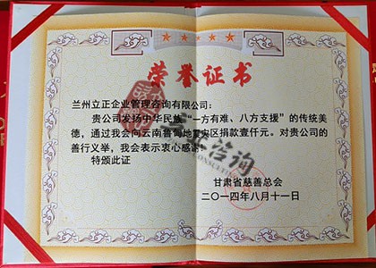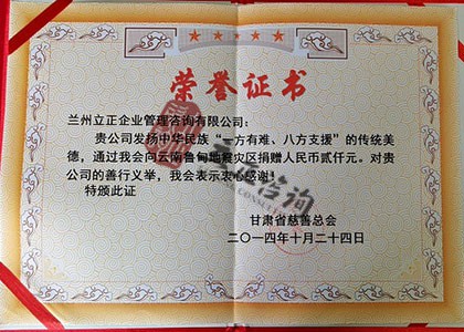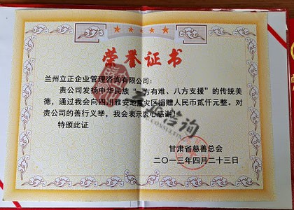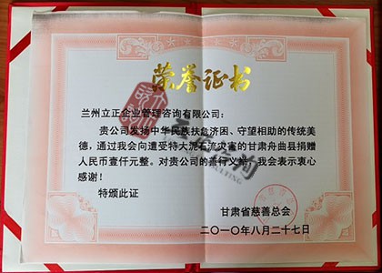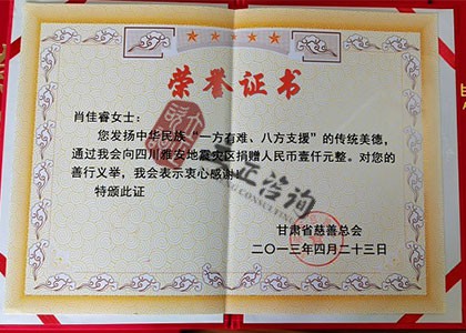 甘肅省慈善總會-捐贈證書