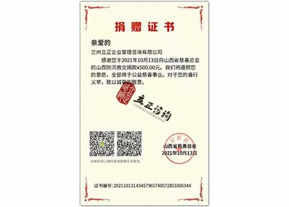 山西省慈善總會-捐贈證書
